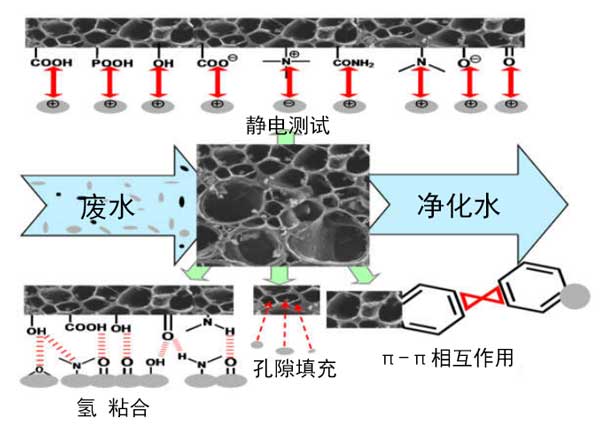 應(yīng)該注意的是,對活化過程的理解是優(yōu)化活性炭制備的基本步驟。實際上,各種化學,物理和物理化學方法被用于從不同的天然或合成資源合成活性炭。化學處理涉及通過浸漬然后熱解使用活化劑,而物理過程涉及在蒸氣或二氧化碳存在下的高溫熱處理。但是,這兩種方法的組合也已用于生產(chǎn)活性炭。根據(jù)所采用的處理方法,很難預(yù)測碳的物理化學和形態(tài)特性。看來形態(tài),物理化學,質(zhì)地,通過改變活化時間和溫度以及所用前體的性質(zhì),活性炭的表面性質(zhì)會發(fā)生顯著變化;钚蕴勘砻娴幕瘜W性質(zhì)取決于存在于表面上的雜原子的類型,例如氧,氮,硫等。這些積累在表面上的雜原子或基團要么來自原材料本身,要么在活化過程中被引入。這在很大程度上與前體的性質(zhì)有關(guān)。所有這些特性對于使用碳作為水溶液中污染物的吸附劑具有重要意義。實際上,污染物在活性炭上的吸附是一個復(fù)雜的過程,在涉及物理作用和/或化學鍵的過程中,各種相互作用可以共存。從而,可能發(fā)生的吸附機理為靜電相互作用,氫鍵,π-π堆積相互作用,孔填充,疏水相互作用,離子交換以及其他相互作用(n-π相互作用等)和絡(luò)合反應(yīng)。圖2說明了在活性炭上吸附污染物的主要相互作用方法。