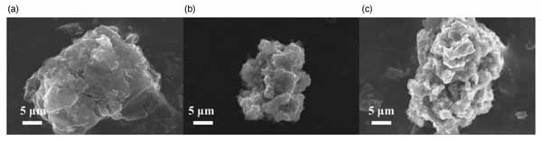 圖2:(a-c)三種活性炭的SEM光譜。