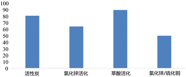 原材料用蒸餾水洗滌數(shù)次,然后干燥24小時,然后將原料通過電動研磨機獲得的粉末。將100g樣品與1L草酸(20%w/w)一起回流180分鐘,然后讓混合物在室溫下冷卻。將出售的部分通過過濾分離,以除去任何過量的草酸,將該固體與250mL/2M鹽酸一起加熱90分鐘。然后,對新混合物進行多次過濾并用蒸餾水沖洗以得到干凈的固體,以除去樣品中存在的任何水分,將固體在130℃的烘箱中放置30小時。最后,為保證樣品的均勻性,將干燥的固體研磨過篩,得到草酸活化的活性炭粉末。對含有100g原料和1L20%w/w氯化鋅酸性溶液的混合物以及100g原料和20%w/w氯化鋅酸性溶液和50g銅的混合物重復(fù)相同的程序。得到的氯化鋅活化的活性炭和氯化鋅/硫化銅活化的活性炭。總計三種活化方式制成的活性炭吸附劑。