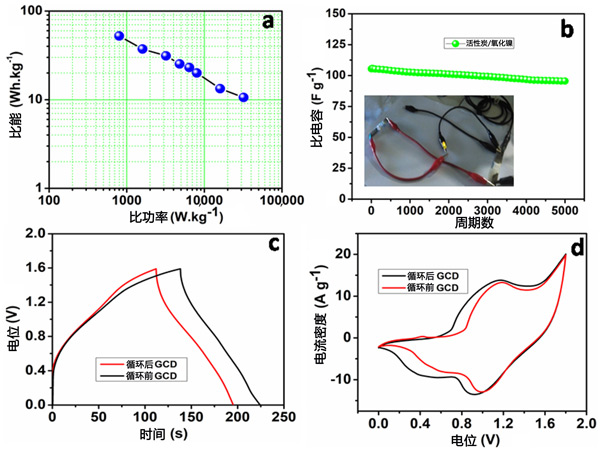 活性炭陰極與氧化鎳陽極制成超級電容器