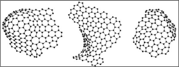 活性炭的具體原子構型尚不清楚,盡管它在水和空氣凈化方面具有重要的商業(yè)意義。通過熱解法制備的碳的構型。她指出,這些碳可以分為兩個不同的組,即石墨化和非石墨化;钚蕴垦苌龅奶际欠鞘,這意味著即使在非常高的溫度(≥3000℃)下,它也可以轉變?yōu)榻Y晶石墨。中子衍射研究表明,非石墨化碳具有類似于富勒烯的骨架,如圖1所示。這種配置將闡明碳的微孔結構及其其他特性。從x射線和中子衍射研究中獲得的衍射數(shù)據(jù)已根據(jù)由非六角環(huán)組成的結構進行了闡明,但無法提供任何明確的證據(jù)表明原子以五角環(huán)或六角環(huán)的形式鍵合。