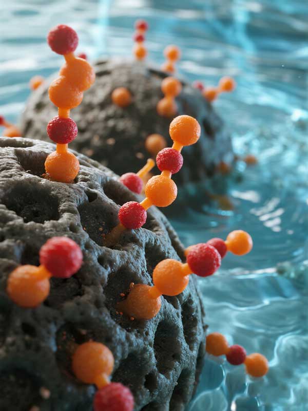 想象一下,活性炭就像一個布滿無數(shù)微小孔洞和溝壑的超級海綿。當(dāng)含有PFAS的水流經(jīng)活性炭濾床時,水中的PFAS分子會被這些巨大的表面積所產(chǎn)生的范德華力牢牢地“抓住”并固定在孔道內(nèi)。這個過程就像磁鐵吸附鐵屑一樣,PFAS分子從水中被分離出來,從而實現(xiàn)了水的凈化。
