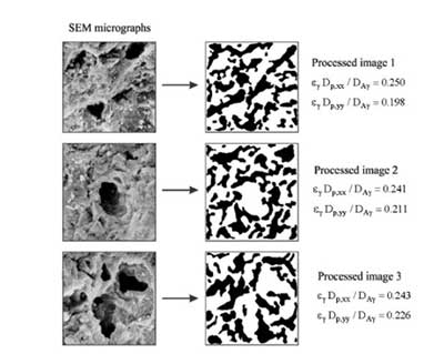 在這篇內(nèi)容中,從放大過(guò)程的角度研究了吡啶在活性炭上的吸附問(wèn)題,并確定了相應(yīng)的有效輸運(yùn)性質(zhì)。通過(guò)體積平均方法研究微觀尺度上的現(xiàn)象。因此,宏觀上的控制方程被獲得,以有效性質(zhì)表示。這些方程被用來(lái)解釋實(shí)驗(yàn)數(shù)據(jù)和預(yù)測(cè)孔隙和表面有效擴(kuò)散率。為此,假設(shè)微觀結(jié)構(gòu)具有簡(jiǎn)單的幾何形狀(圓柱體和球體的有序介質(zhì))或者從SEM(掃描電子顯微鏡)顯微照片處理的圖像獲得。此外,作為粗略估計(jì),報(bào)道了點(diǎn)表面擴(kuò)散率。