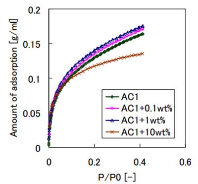 活性炭在0.4的相對(duì)壓力下。 當(dāng)它是1wt%時(shí),正丁烷的吸附量增加了最多是原料碳的1.11倍。 當(dāng)它為10wt%時(shí),正丁烷的吸附量減少比原始碳高出7%。根據(jù)上述結(jié)果,當(dāng)硅酸鈉溶液的條件是0.1和1wt%分別可以說,正丁烷對(duì)二氧化硅浸漬碳的吸附性能較大比法碳。