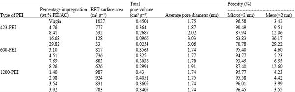 表1圖:原始和PEI浸漬活性炭的結(jié)構(gòu)特征。