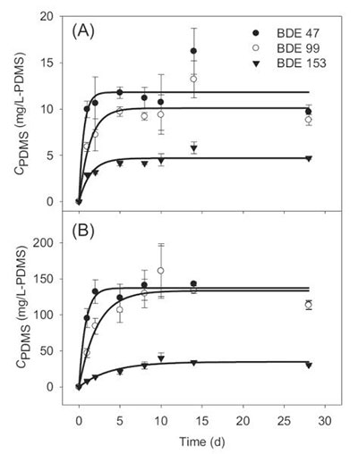 圖1:活性炭在混合條件下沉積物中PDMS纖維的吸收動(dòng)力學(xué)。