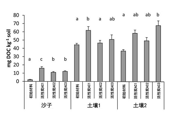 圖1:用不同的活性炭處理溶解沙土樣品中的有機碳。