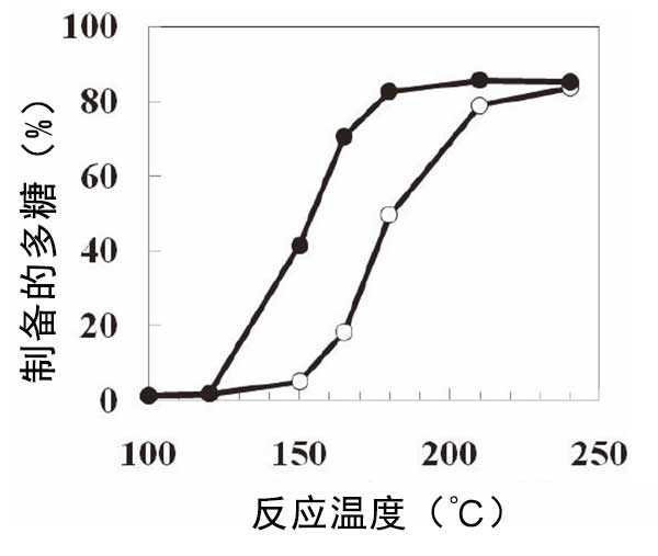 將含有或不含活性炭的葡萄糖漿在各種溫度下加熱30分鐘(圖2)。從100℃至120℃,觀察到多糖難消化部分的含量幾乎沒有增加。含有和不含活性炭的多糖難消化部分的含量在150℃下為41.4%和4.9%。在120至180℃下,在活性炭存在下不可消化部分的含量顯著增加。在高于180℃的溫度下,難消化部分的產(chǎn)生是恒定的。因此,當(dāng)加熱溫度高時,可以在短時間內(nèi)達(dá)到目標(biāo)產(chǎn)率。在設(shè)計制造過程時,反應(yīng)溫度和時間的平衡很重要。