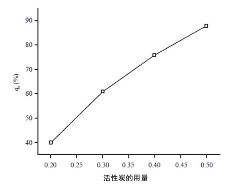 吸附劑劑量的影響:使用給定的前者初始濃度和pH,作為活性炭負(fù)載的函數(shù)吸附的酚紅染料的百分比(w/w)的圖示于圖5中。在其研究范圍內(nèi),隨著活性炭負(fù)荷的增加,染料的吸附增加。這可能是因為在增加活性炭負(fù)載,它的表面面積,因而活性位點/吸附物(染料)分子的可用性增加。