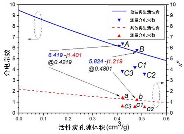 活性炭擁有優(yōu)秀的吸附能力,是由于各種不同原料與不同工藝而導致活性炭內部的孔結構和大的比表面積,使其成為理想的介質,用于吸附雜質和純化兩種水溶液或者各種廢氣處理。為了回收和保護有限的資源,用過的活性炭需要重新活化。用于再生活性炭微波熱處理比其他處理方法更好,更節(jié)能地再生活性炭。特別是在微波加熱工業(yè)中,介電常數(shù)是一個關鍵參數(shù)。本文介紹介電常數(shù)與活性炭孔隙體積與吸附性能之間的關系。