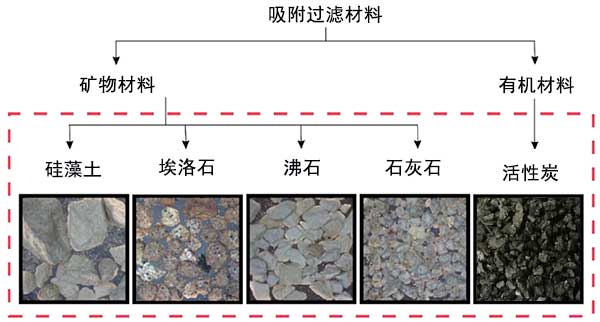 在分析中使用活性炭和未經(jīng)修飾的礦物材料,例如沸石,石灰石砂,硅藻土和埃洛石(圖1)。礦物材料是不經(jīng)受預(yù)處理,以確保使用最經(jīng)濟上有利的材料。本期使用的活性炭是一種微孔材料,由微孔表面和體積值和相對較低的中孔表面值證明該材料的表面。硅藻土,沸石和埃洛石是中孔材料,因此其特征在于具有中間孔的平均比表面積,所述中孔具有不規(guī)則尺寸和形狀的窄裂縫形狀。在埃洛石中觀察到這些礦物中介孔的大比表面積和體積,而硅藻土的孔隙比較少,石灰石砂可歸類為無孔材料。