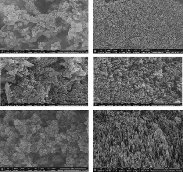 對于SEM研究的情況,活性炭的形態(tài)顯示出不均勻和粗糙的表面(圖2)。在放大倍數(shù)為40000時(shí),可以看出表面被硅磷酸鹽晶體覆蓋。來自稻草的蘇打制漿黑液的活性炭具有較高的硅磷酸鹽晶體。然而,使用中性亞硫酸鹽制漿黑液的活性炭中只有較低的晶體。
