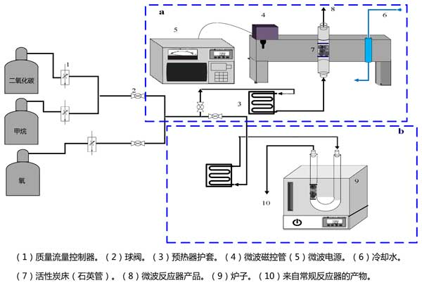 圖1:微波和甲烷干重整的常規(guī)設置的示意圖。