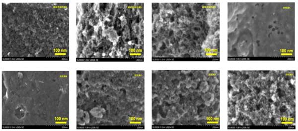 圖1:放大200k時,不同的活性炭的SEM圖像。